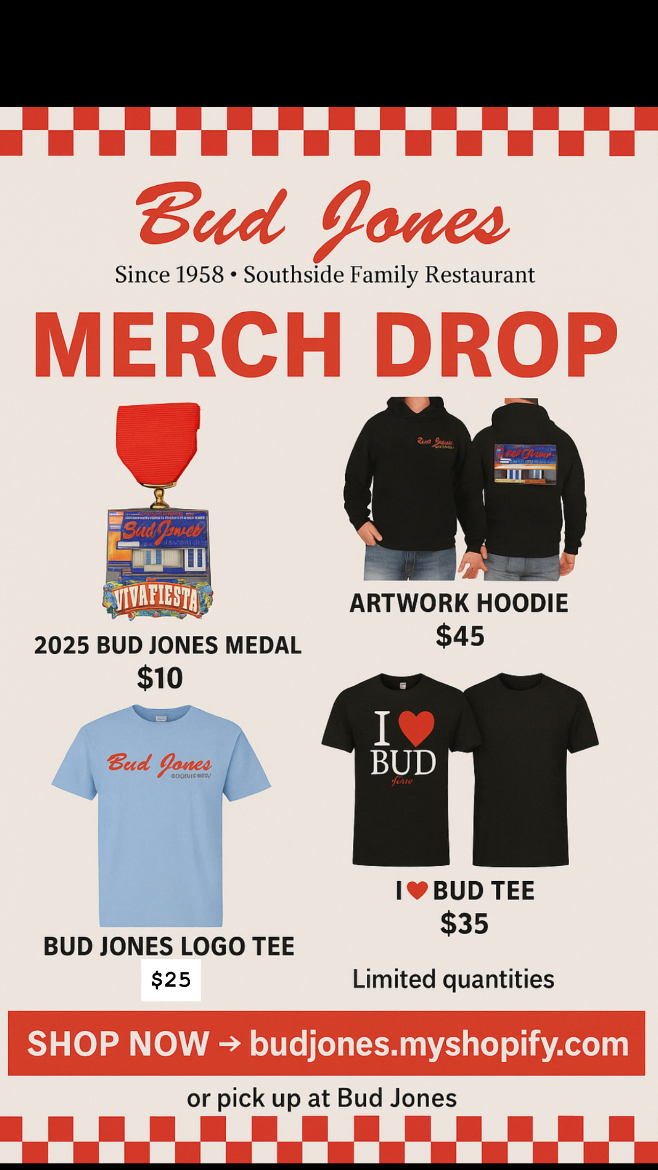 It all began back in 1958, when Bud Jones returned from a long journey working in the merchant marines and as master chef on a luxury cruise liner. Having grown up at his father's famous Bob Jones Restaurant on Roosevelt Avenue, Bud decided to try his own hand in the restaurant business, and opened Bud Jones Restaurant in what was once Walsh's Grocery Store on Military and Commercial. Bud served his first plate of fish and chips in October of 1958. The very day of the restaurant's grand opening, Bud was literally overwhelmed with business. He excused himself from his customers, ran out the back door and begged a woman hanging her laundry next door to please come and help him. Bernice Housos would become Bud Jones's first employee. She continued working at the restaurant for the next 50 years until her death in 2008. Our employees have a habit of sticking around. Many have been with us for more than 25 years. Over the years, the building that houses Bud Jones Restaurant has gone through many changes and additions, including a devastating fire in 1978, and more recently, a global pandemic that almost shut us down. Some restaurants would have never recovered, but thanks to a tremendous amount of help and support from Bud's generous and loyal customers, Bud Jones Restaurant has continued to remain. Bud's daughter Kathy would take over in 1985 and carry on the Family's legacy until 2019, where she would then pass the reins to her daughter, Kaycee. Who will continue working on the family tradition, ensuring that Bud Jones Restaurant remains a part of San Antonio's landscape for years to come! If you're a long-time customer, we thank you for your continued patronage. If you've never dined with us before, come visit us and see why we've been a San Antonio favorite since 1958.